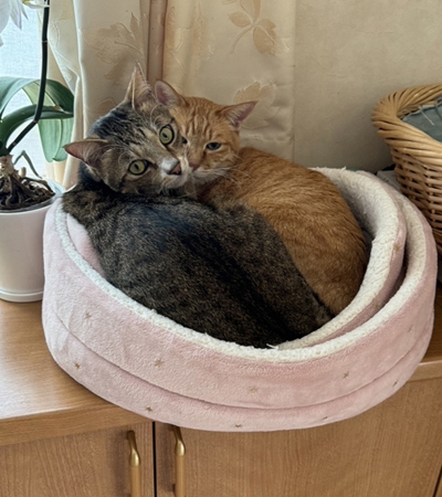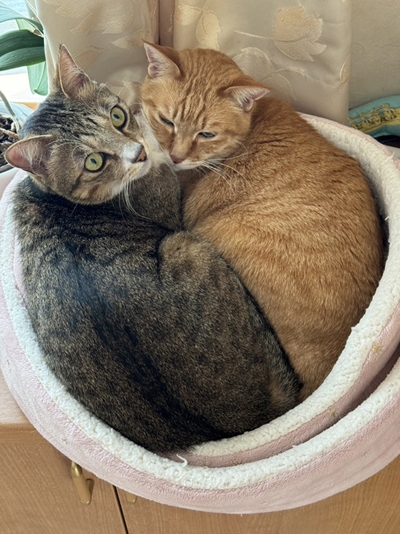 こちらは仲良く寝ている2匹、なつめとちゃとらっしゅ